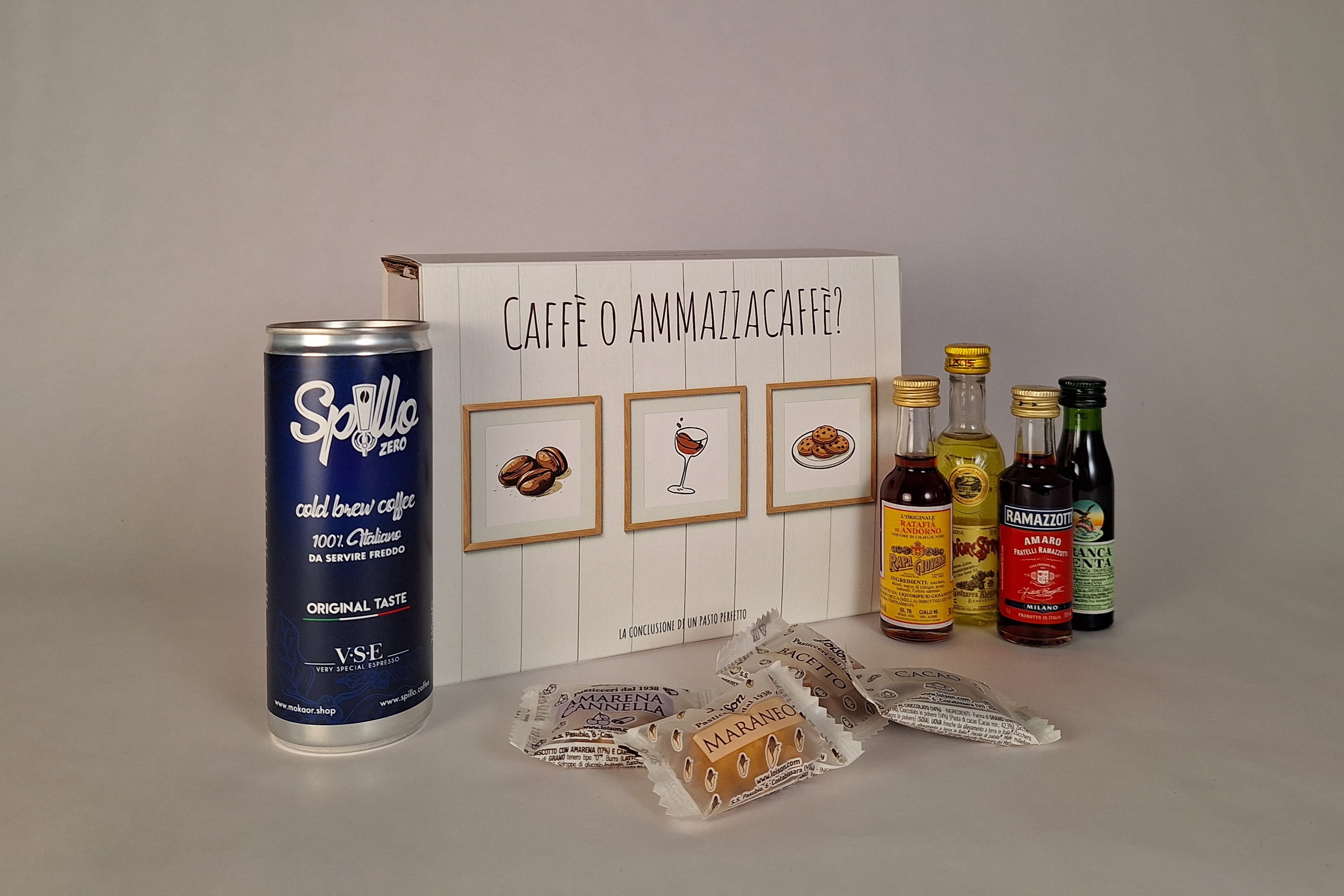 Il Kit Caffè o Ammazzacaffè nasce per accompagnare il momento del dopocena con gusto e semplicità, unendo il caffè Cold Brew di Mokaor a una selezione di amari e liquori pensati per essere abbinati, insieme a biscotti artigianali.