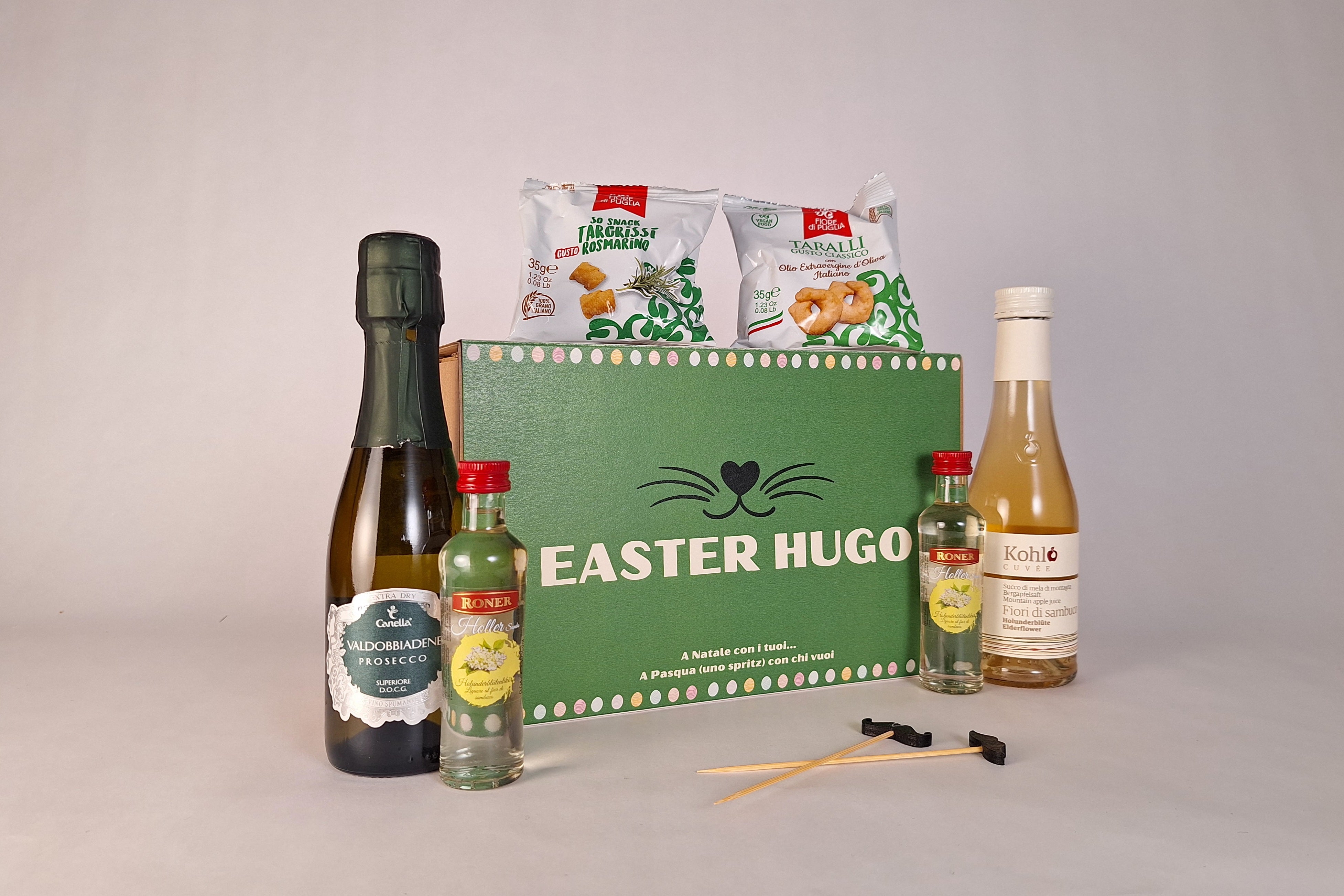 Non il solito Spritz Hugo. Easter Hugo è un kit cocktail per due persone, pensato per chi cerca un’idea regalo originale per Pasqua o un aperitivo diverso dal solito da preparare a casa.