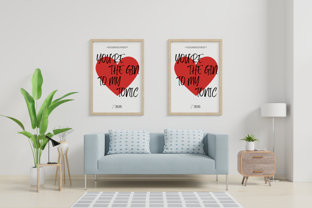 Il poster “You’re the Gin to my Tonic” di Bevande Miscelate è la dichiarazione d’amore perfetta per chi vive di ironia e Gin&Tonic.