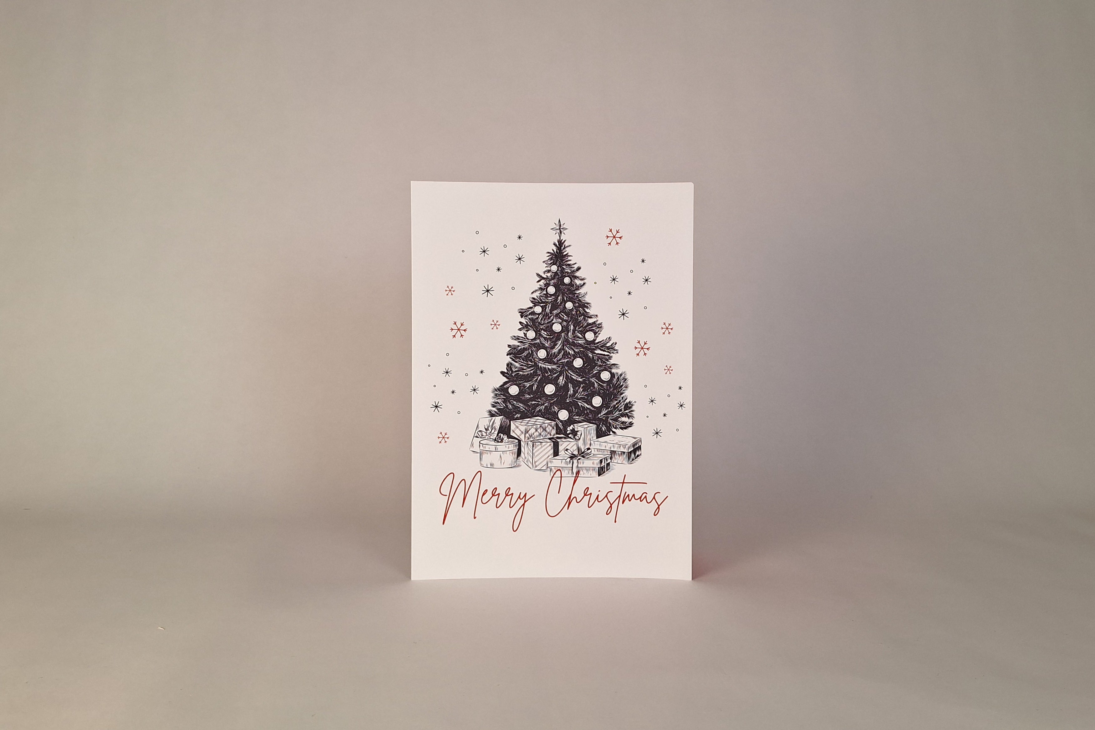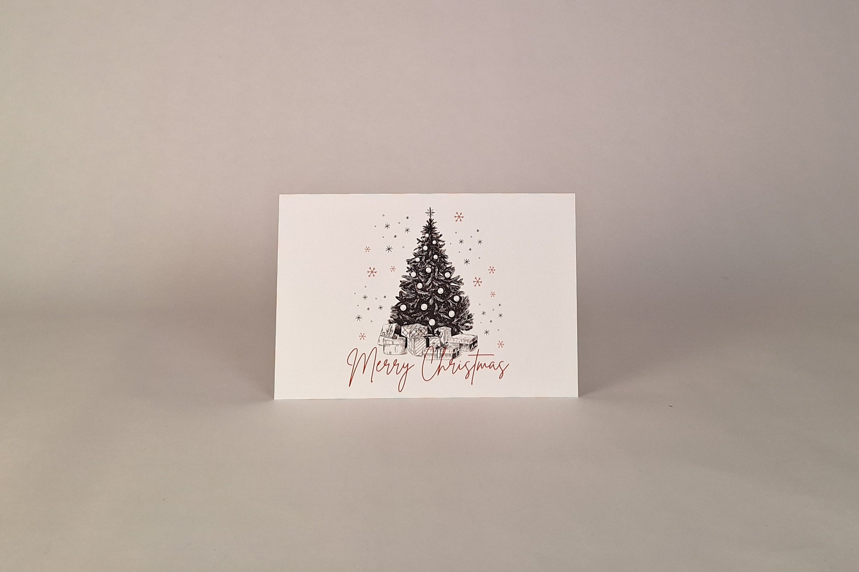 La Cartolina di Natale Classica di Bevande Miscelate è pensata per chi ama la tradizione e i dettagli curati. La grafica raffigura un albero di Natale stilizzato con la scritta Merry Christmas, per trasmettere un messaggio semplice e sincero.