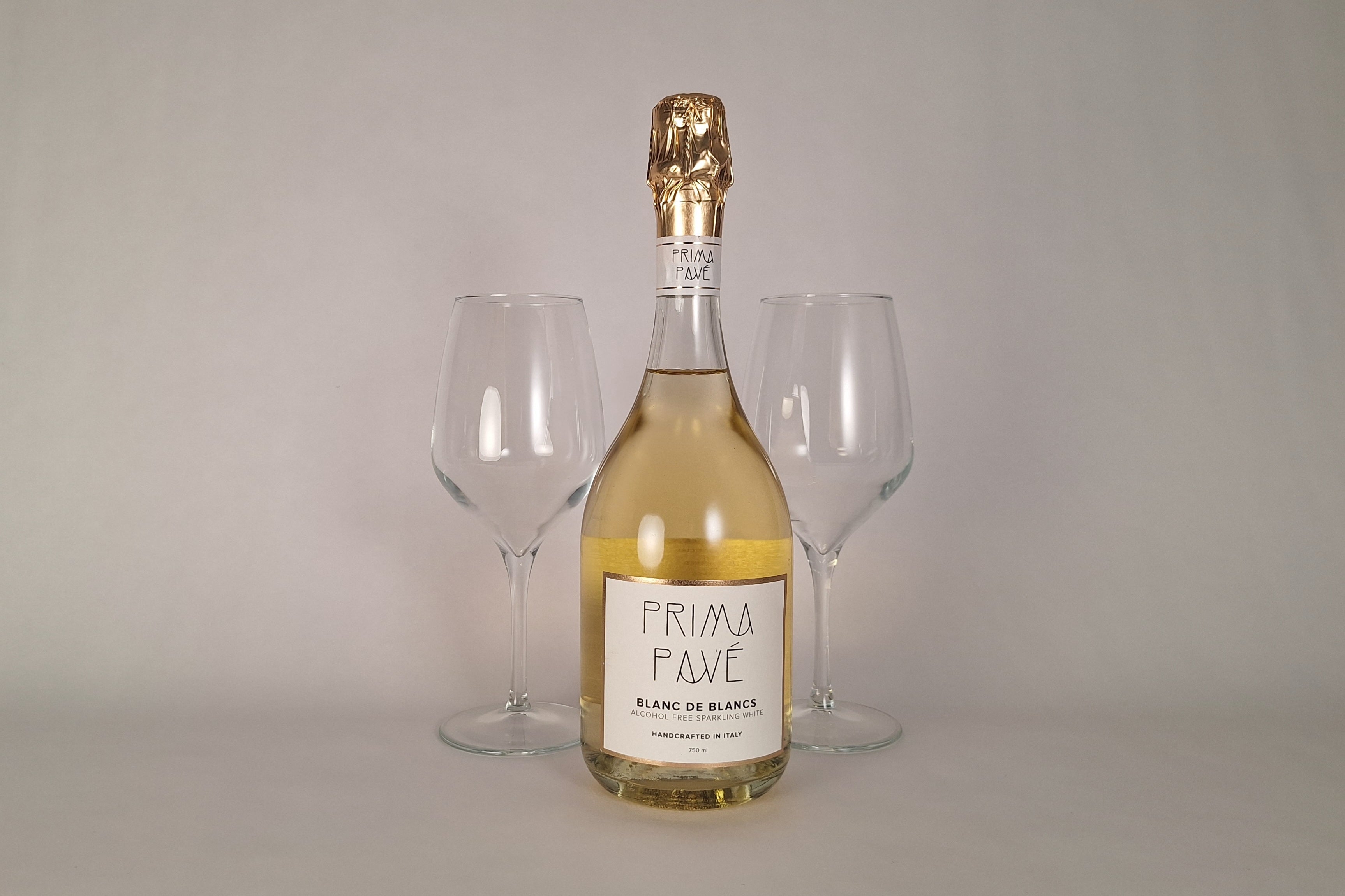 All’interno della box Brindisi d’Amore analcolico troverai una bottiglia di spumante analcolico Prima Pavé (0,75l) a scelta tra Rosé Brut o Blanc de Blancs, accompagnata da due calici da vino eleganti, ideali per rendere il momento del brindisi ancora più speciale.