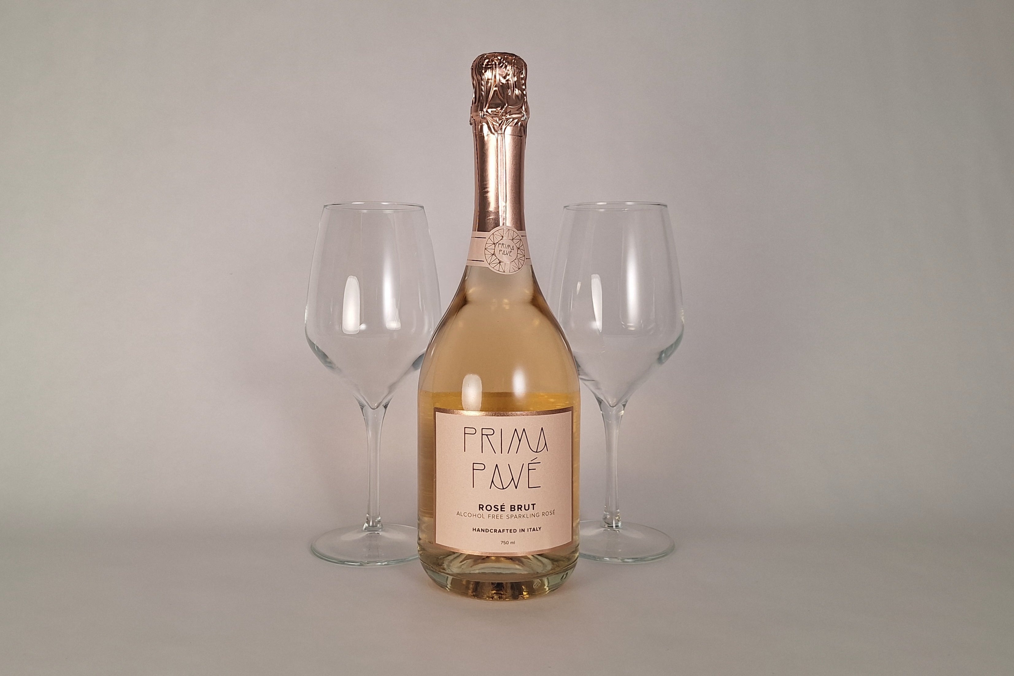 All’interno trovi uno spumante analcolico Prima Pavé, disponibile in due varianti a scelta: Rosé Brut, delicato e fruttato, oppure Blanc de Blancs, fresco ed equilibrato.