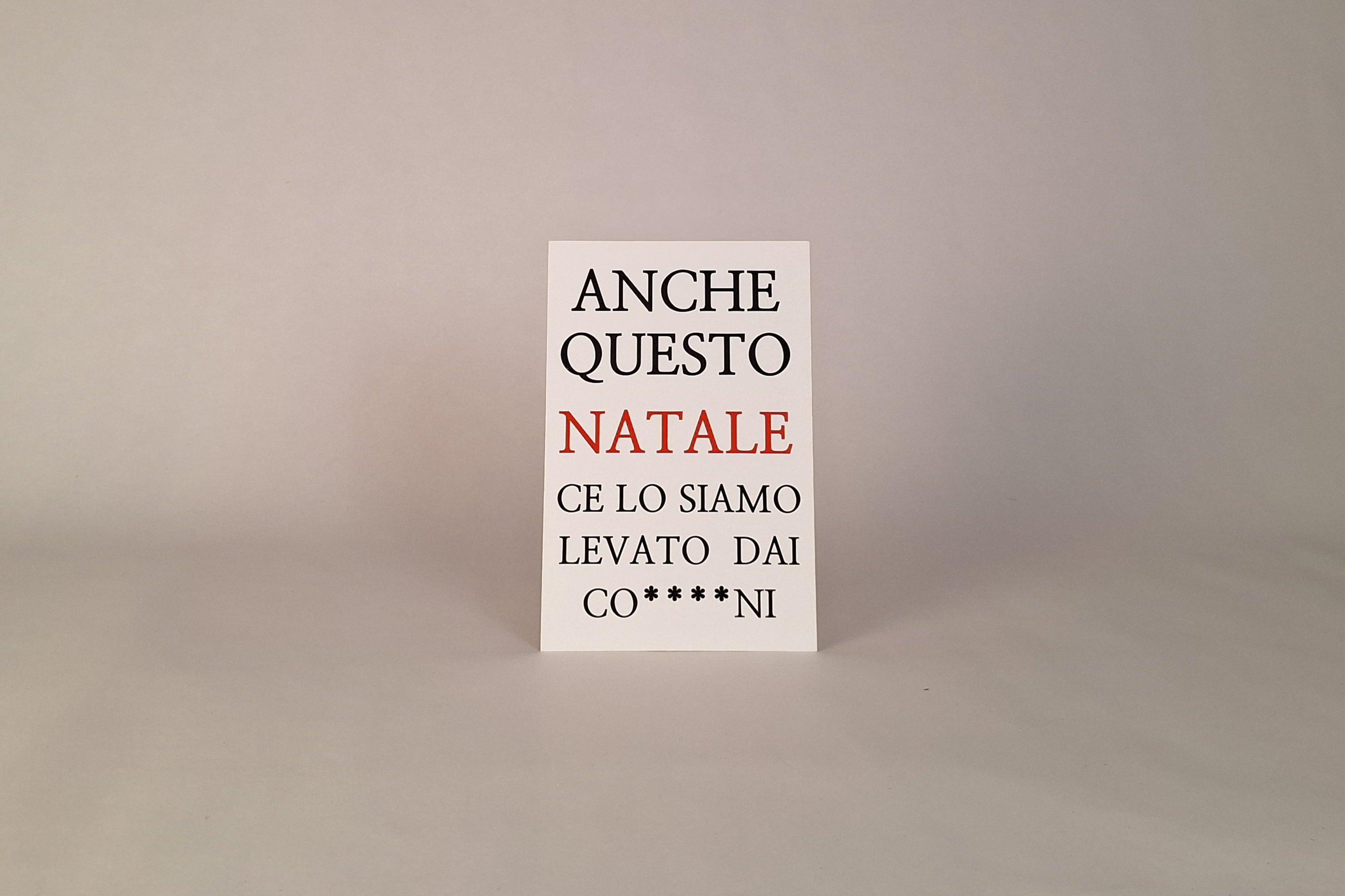 Realizzata su carta patinata di alta qualità con busta coordinata, è un piccolo gesto che racconta un mondo: quello di chi non prende troppo sul serio le feste, ma vuole comunque lasciare il segno.