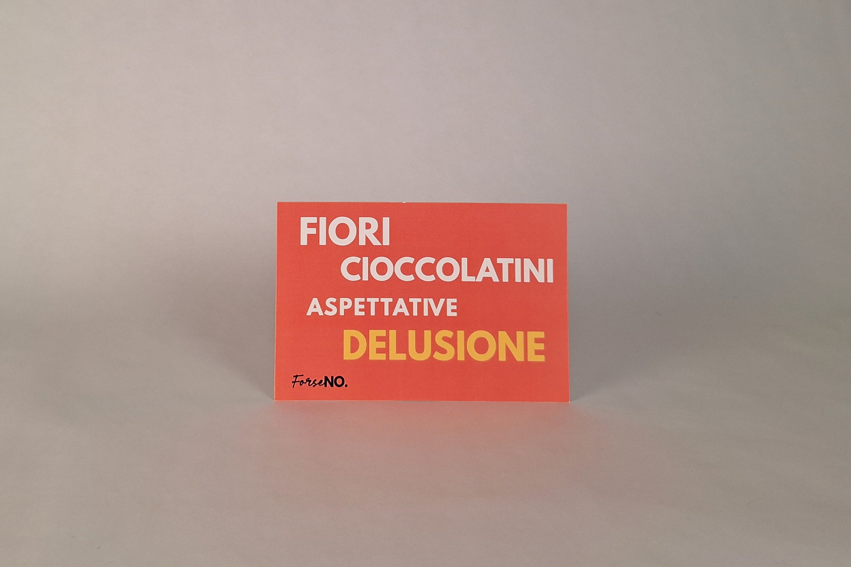 Una cartolina che funziona sia come messaggio che come piccolo oggetto grafico, coerente con il linguaggio diretto e disilluso di ForseNO.