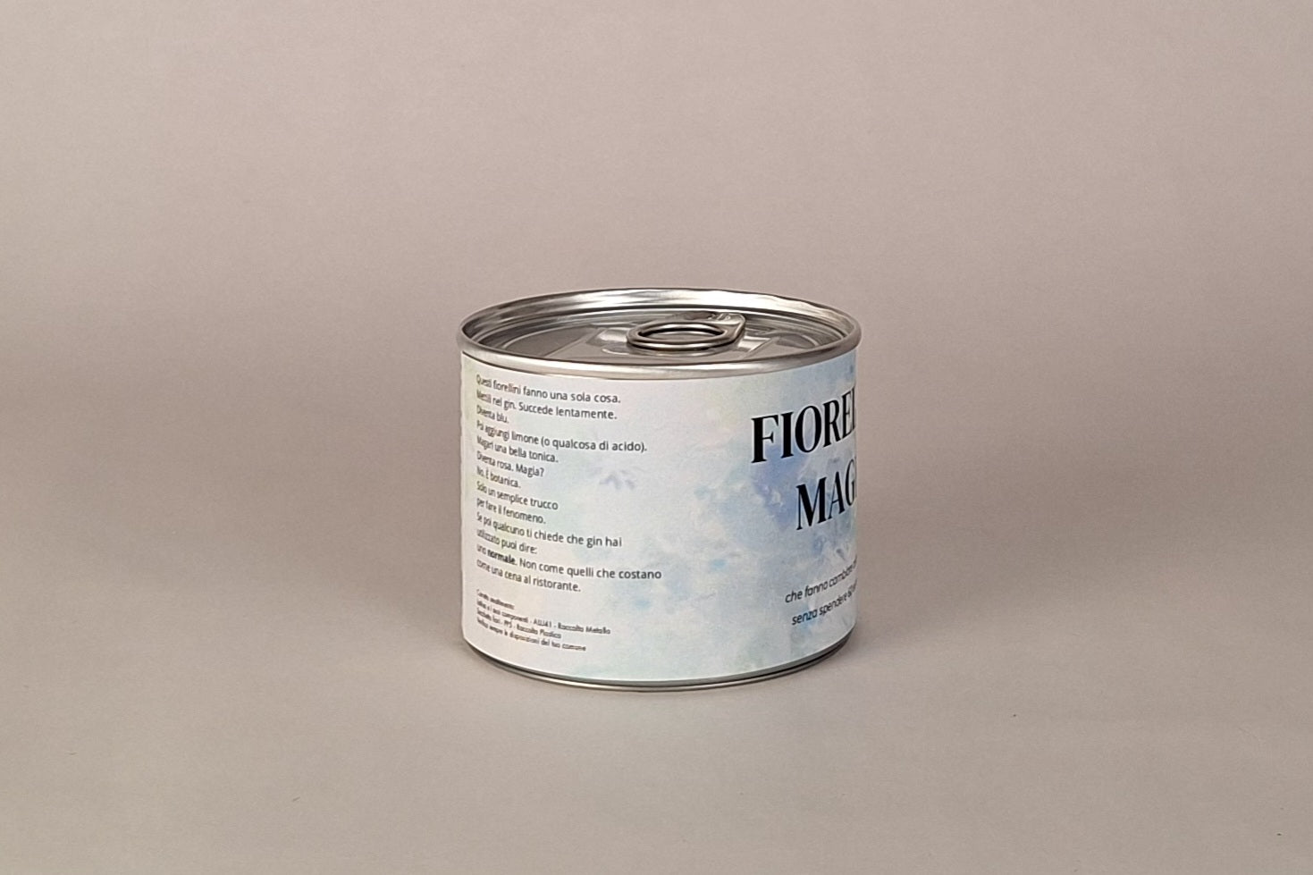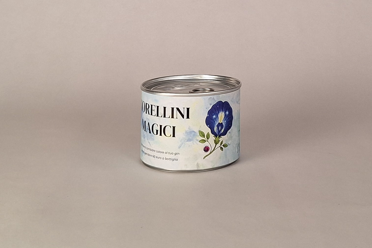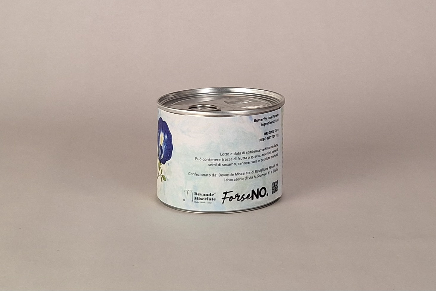 Dentro questa latta trovi fiorellini blu essiccati (butterfly pea flower), conosciuti per una cosa molto semplice: