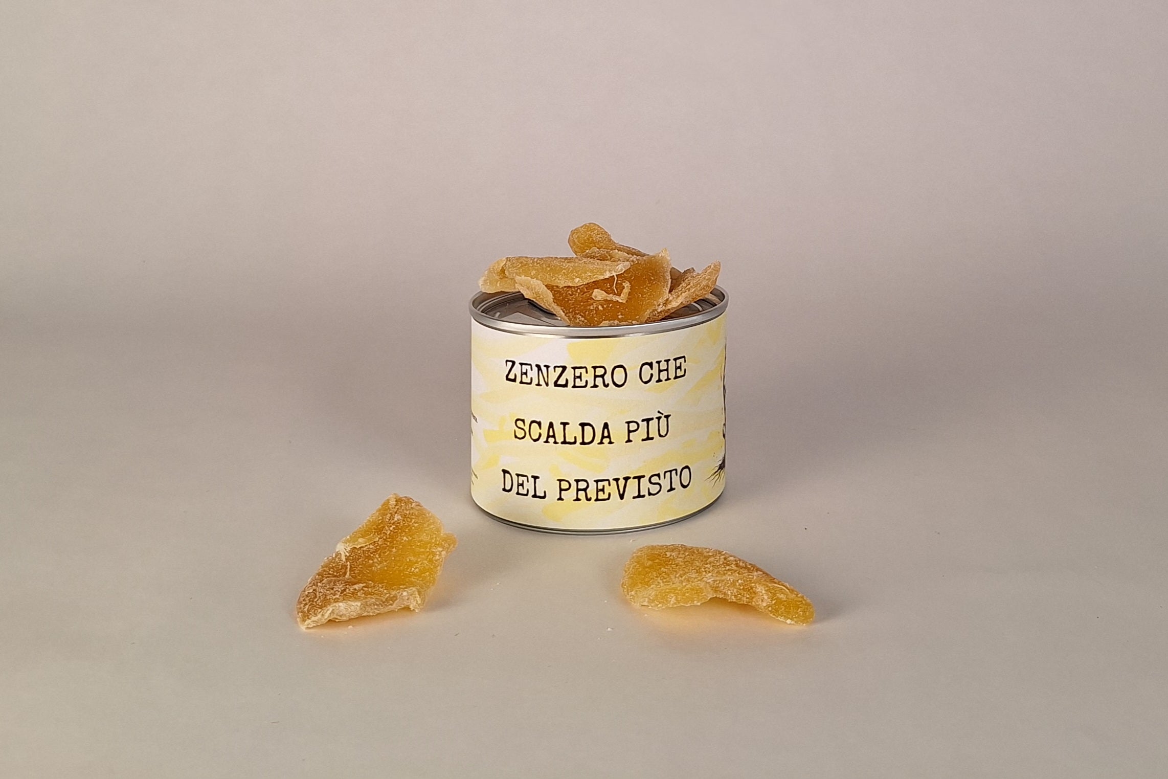 Dentro questa piccola latta trovi 50g di zenzero candito dal carattere deciso.